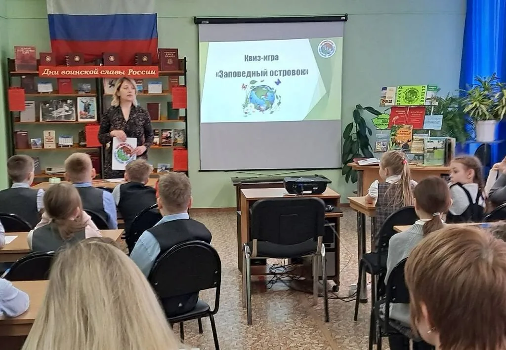 14 марта заповеднику «Большая Кокшага» исполняется 30 лет. В преддверии этой даты в Центральной библиотеке имени Р. С. Иванченко для учащихся 3 «Б» класса МБОУ «Средняя общеобразовательная школа №23» было проведено юбилейное мероприятие «Большая Кокшага – богатство марийского края». Гостями мероприятия стали сотрудники государственного природного заповедника «Большая Кокшага» О. В. Грудцына – заместитель директора, А. В. Матрук, С. Н. Домрачева, Л. И. Беспалова – методисты по экологическому просвещению и развитию познавательного туризма. Грудцына Ольга Вадимовна познакомила школьников с деятельностью заповедника, определила цель работы ГПЗ, пояснила значение слова «заповедник», ответила, почему он называется «Большая Кокшага», назвала размер площади, которую занимает заповедник, кратко перечислила, какие там обитают животные, птицы, пресмыкающиеся, растут деревья и цветы, представила эмблему заповедника.
