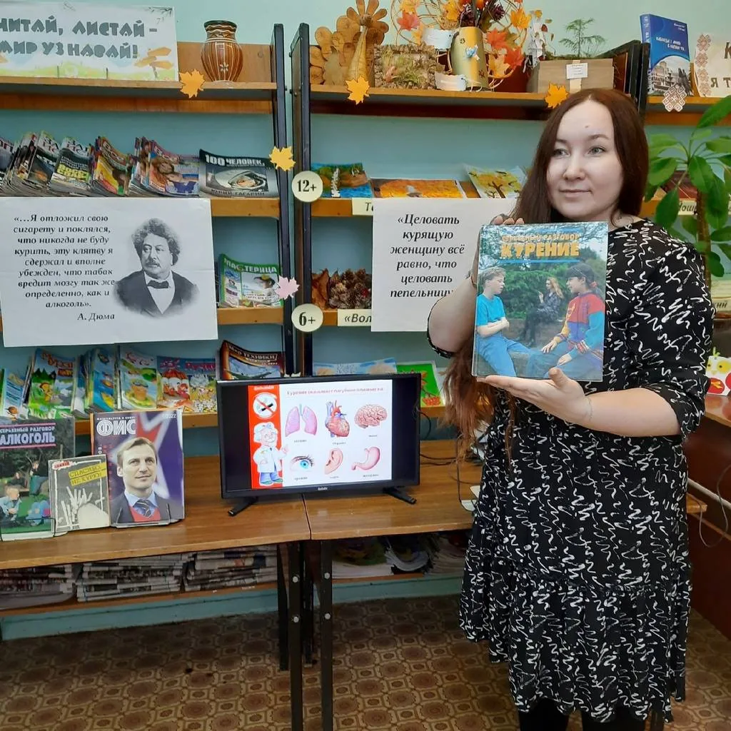 Библиотекари рассказали об истории возникновения табака, его распространении и борьбы против его употребления в разных странах и в различные исторические эпохи. Особое внимание было уделено информации о пагубном влияние сигарет и никотина на организм человека. Чтобы закрепить полученную информацию, присутствующие ответили на вопросы диспут-викторины «Курить: вредно или полезно?», которая привлекла внимание молодёжи к данной проблеме и, хочется надеяться, заставила их задуматься о разрушительном вреде курения на здоровье подрастающего организма, убедила подростков вести здоровый образ жизни.