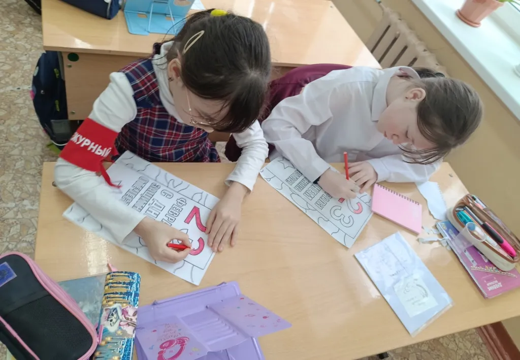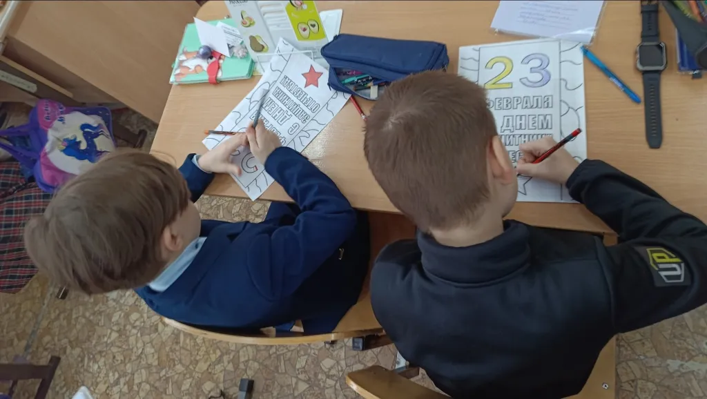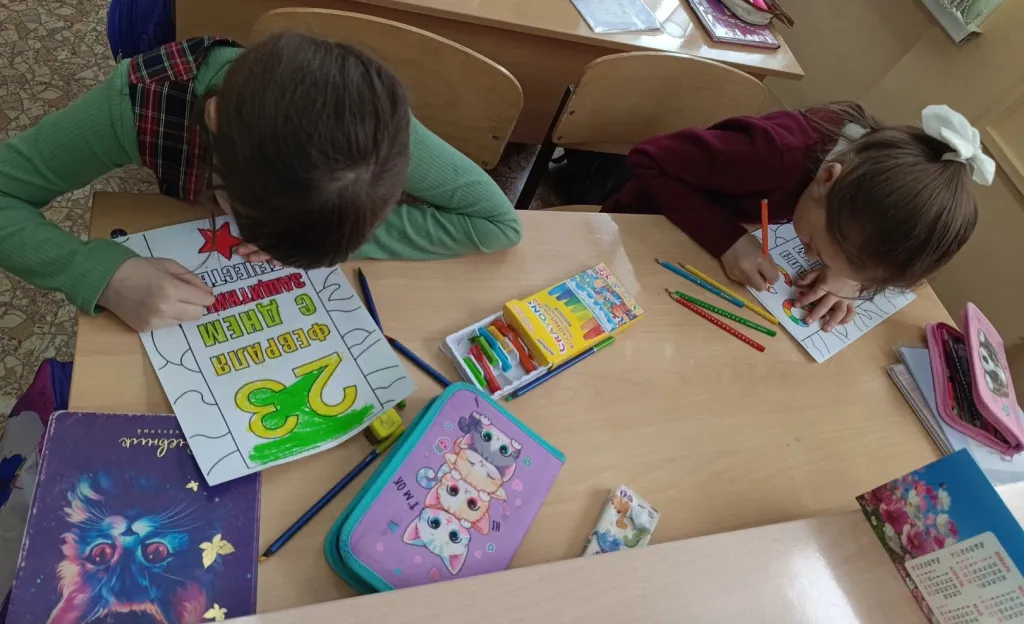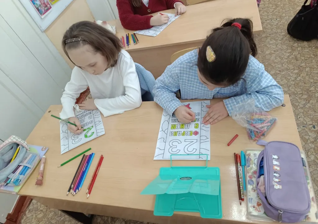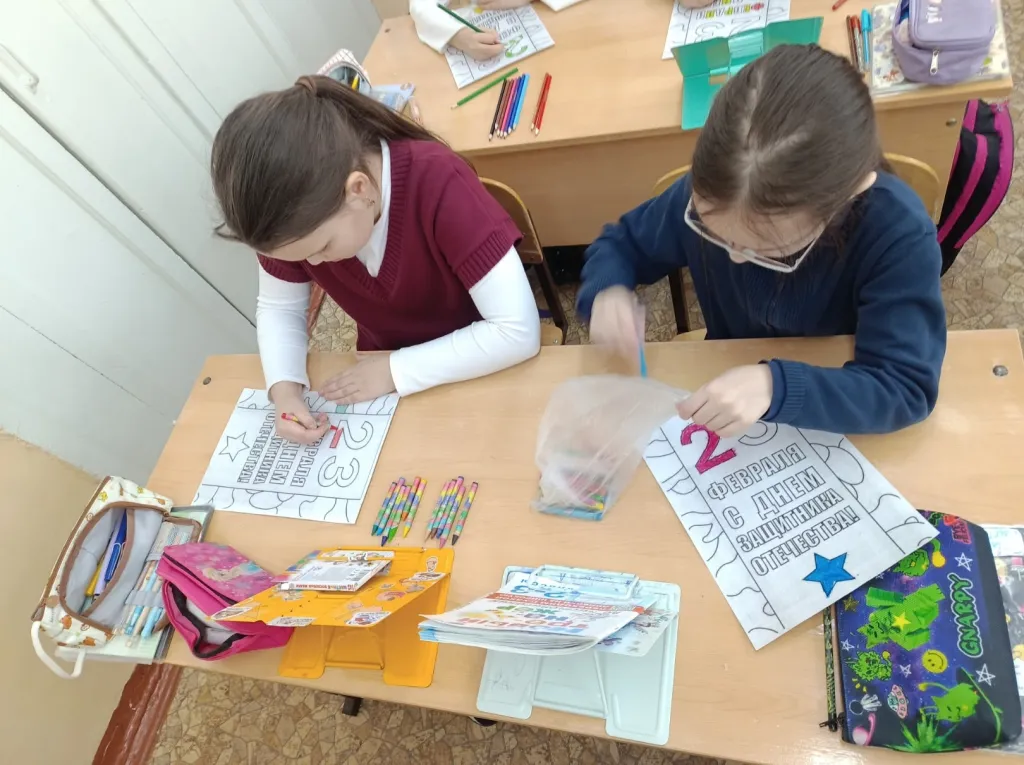 В конце мероприятия учащиеся рисовали поздравительные открытки ко Дню защитника Отечества.