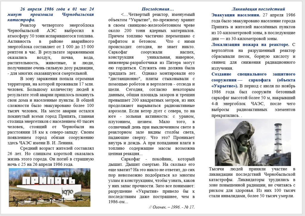 26 апреля 1986 года в 01 час 24 минут произошла Чернобыльская катастрофа.
