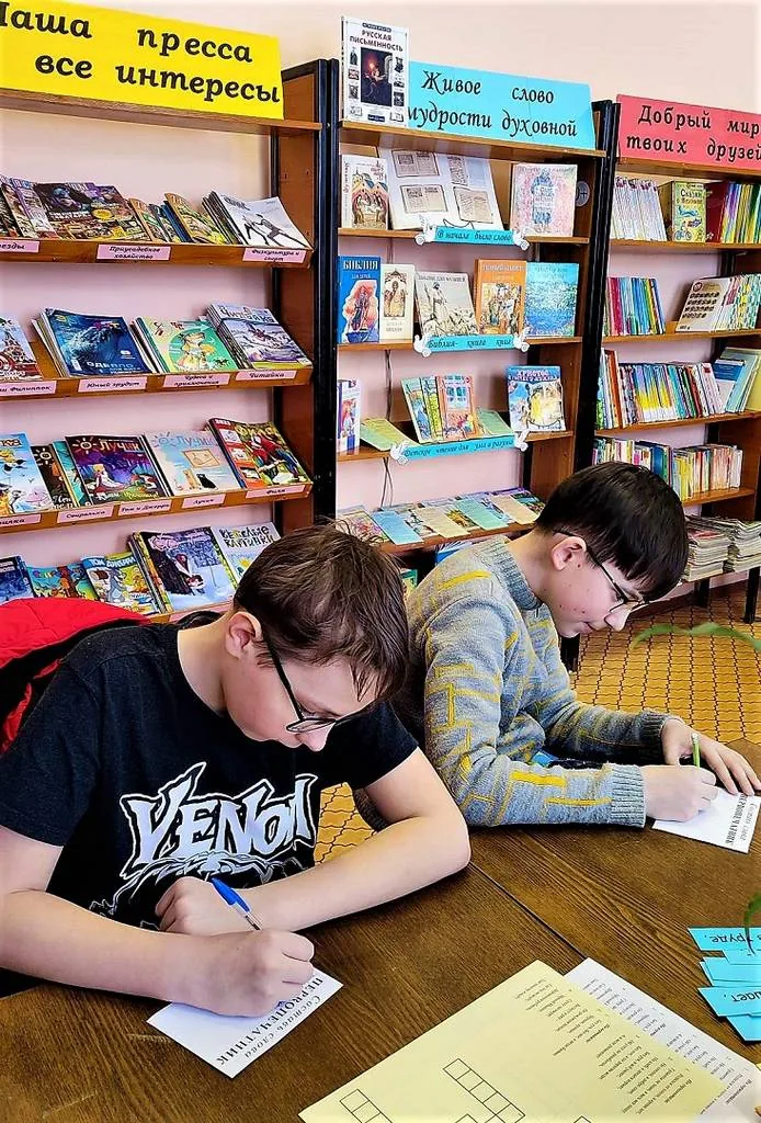 Все желающие могли проверить свою сообразительность, находчивость, внимательность, приняв участие в состязании эрудитов. Для них были подготовлены различные интересные задания: «Составь пословицы», «Секретный приказ», «Отгадай», «Подумай и ответь» и другие. С большим увлечением ребята отгадывали кроссворд, составляли слова из слова «Первопечатник» и рисовали обложку книги, представив, что они работают в типографии.