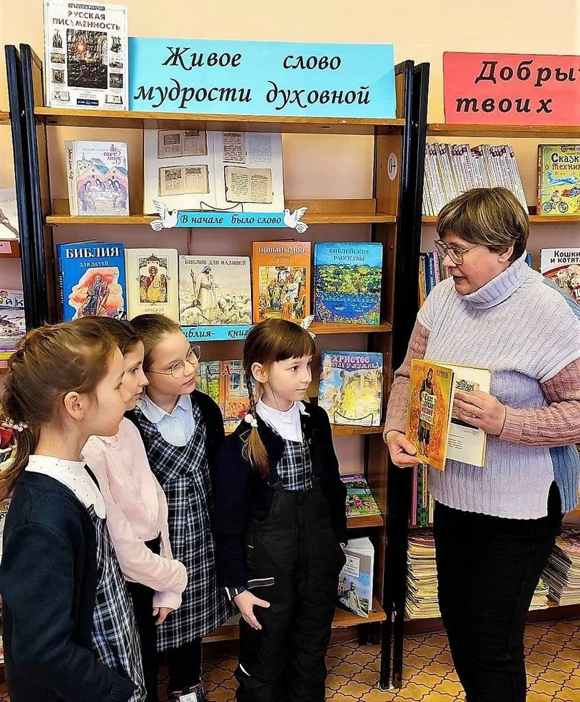 Сотрудники библиотеки знакомили читателей с книгами православной направленности, представленными на книжной выставке «Живое слово мудрости духовной». Это книги о русской письменности, Библия – самая читаемая, самая известная и самая необыкновенная книга в мире, а также журналы «Детское чтение для сердца и разума».
