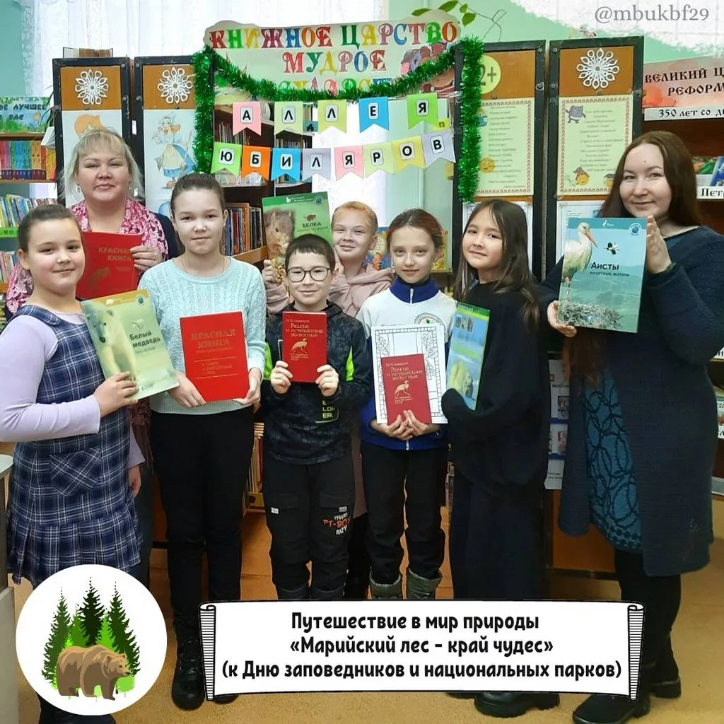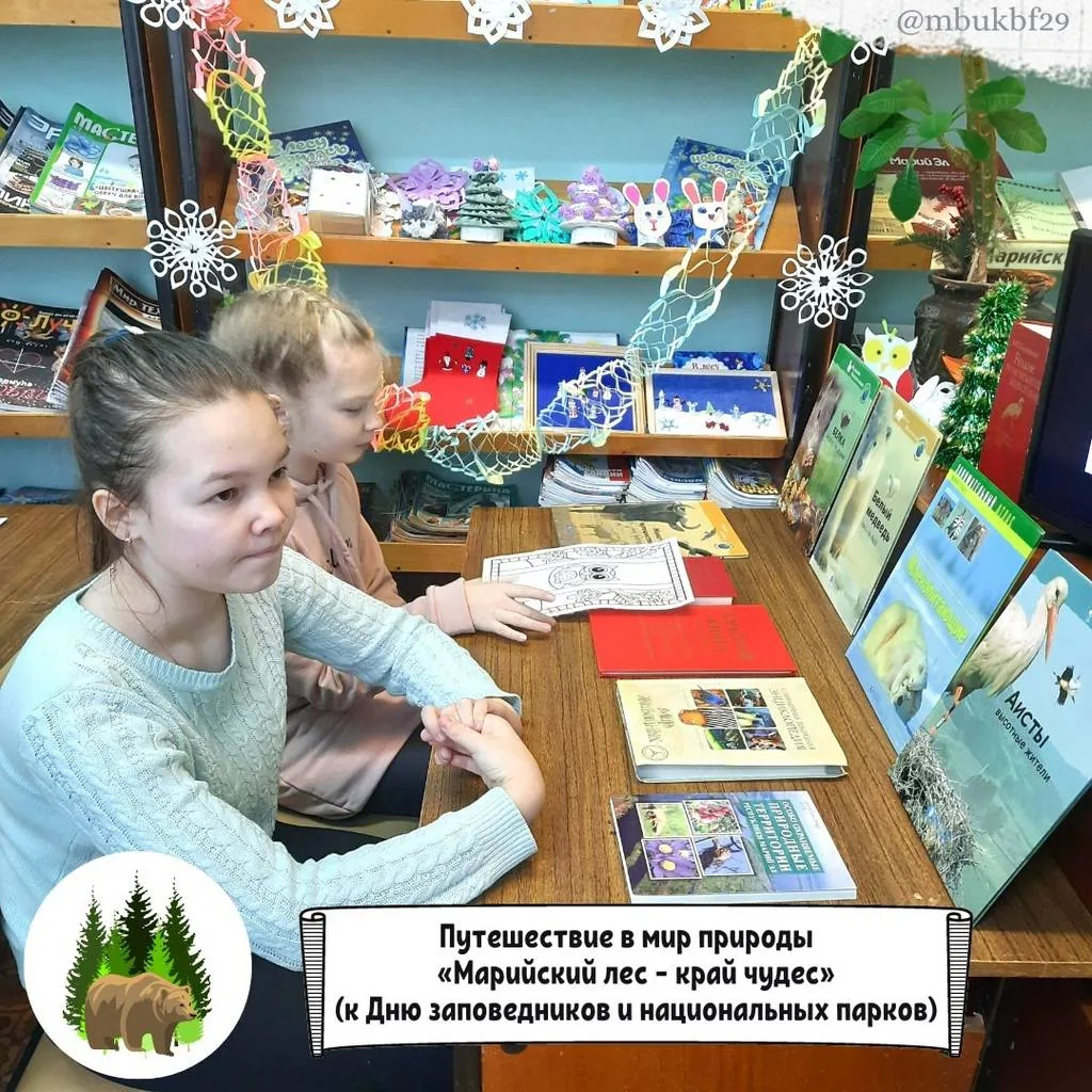 Ежегодно 11 января в России отмечается День заповедников и национальных парков. К этой дате в библиотеке-филиале №29 13 января прошло несколько мероприятий: путешествие в мир природы «Марийский лес – край чудес» в рамках проекта «Культура для школьников» для воспитанников детского клуба «Факел» и тематический урок с мастер-классом «Лесные жители Республики Марий Эл» для юных читателей библиотеки в рамках традиционных «творческих пятниц».