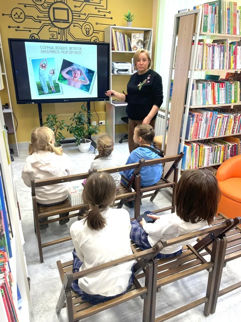 В библиотеке-филиале №19 в рамках Всемирного дня здоровья сотрудники филиала провели для воспитанников детского клуба «Таир» физкультминутку «Веселые эстафеты».