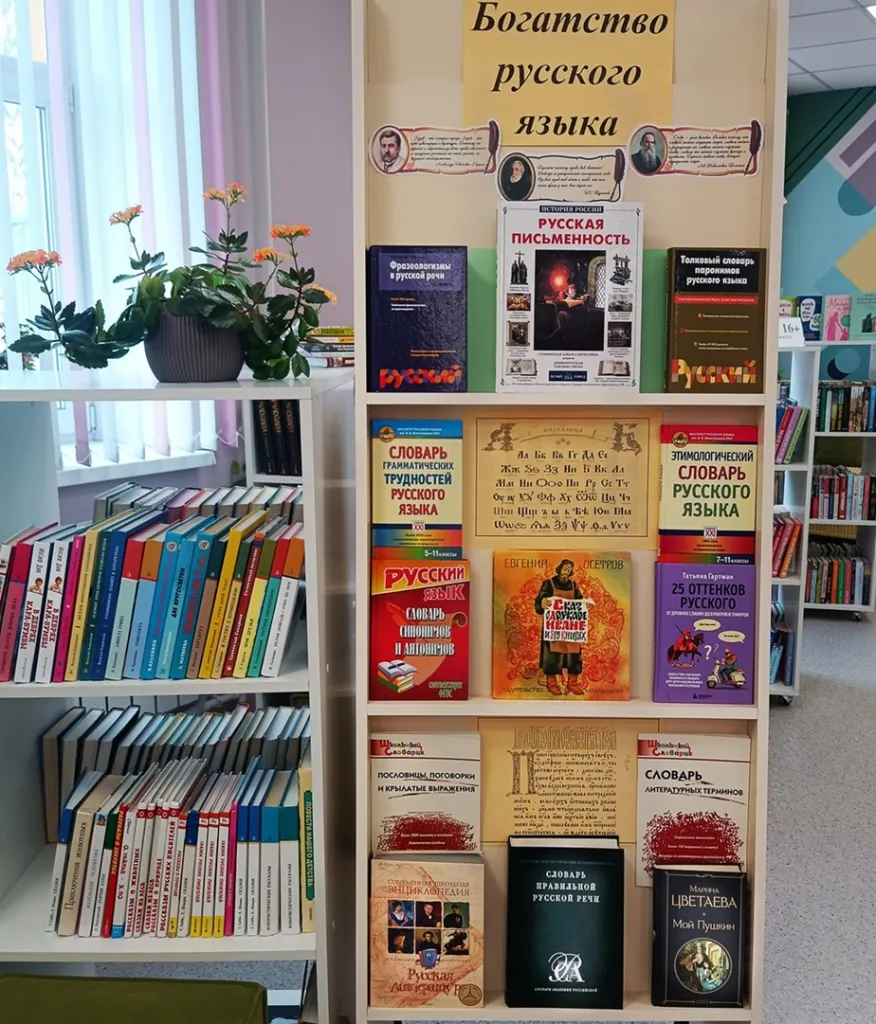 В модельной библиотеке-филиале №1 оформлена книжная выставка «Богатство русского языка», приуроченная к Международному дню родного языка, который отмечается 21 февраля. Этот праздник, учреждённый Юнеско, напоминает о ценности языкового наследия и важности бережного отношения к родному слову.