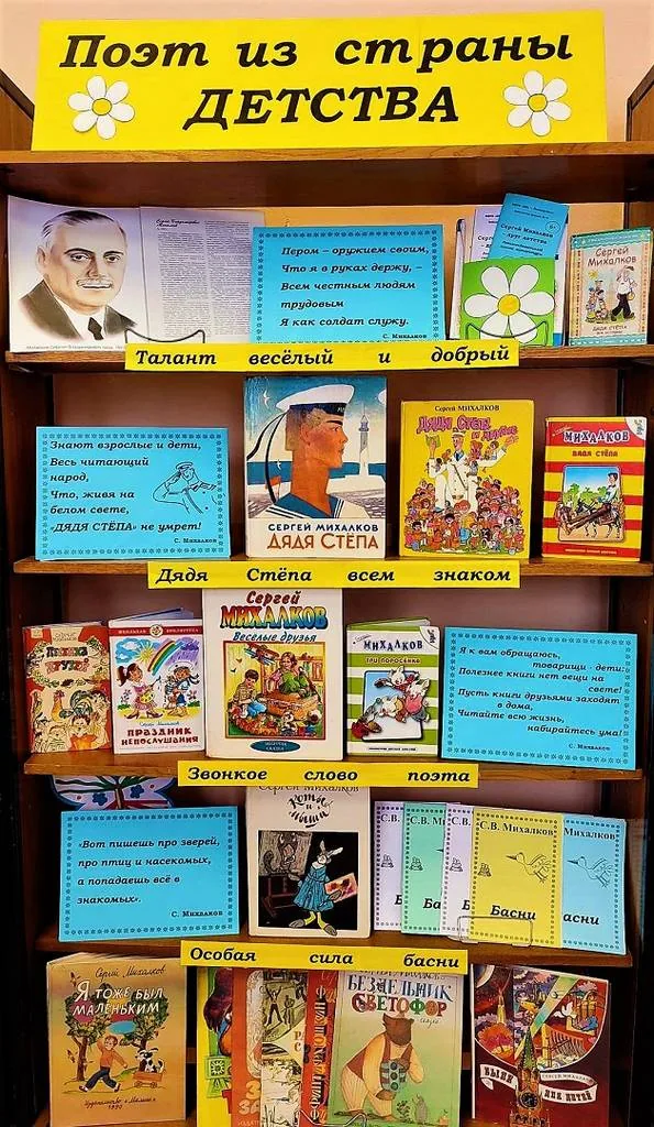 К 110-летию со дня рождения замечательного детского писателя, поэта Сергея Михалкова в библиотеке-филиале №19 оформлена книжная выставка «Поэт из страны детства», на которой представлены его произведения, любимые не одним поколением юных читателей.