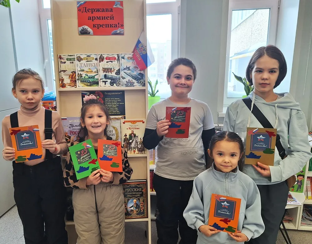 Далее библиотекарь прочитала ребятам поучительную историю «Как Вова готовил подарок деду», затем дети поиграли в игру «Танки, корабли, самолеты», приняли участие в тематической викторине и изготовили праздничные открытки.