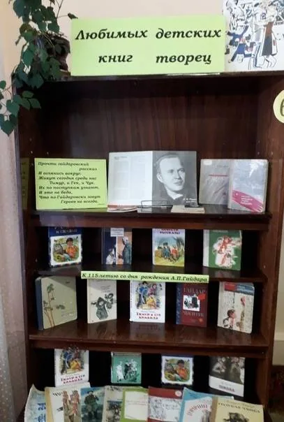 Началось мероприятие с рассказа библиотекаря о жизни и творчестве Аркадия Гайдара. Ребята узнали, как появился литературный псевдоним писателя и что он означает, какие повести и рассказы для детей он написал, познакомились с книгами, представленными на книжной выставке «Любимых детских книг творец». Книги А.Гайдара учат доброте, дружбе, верности, тому, что «надо честно жить и много трудиться, крепко любить и беречь эту огромную землю».