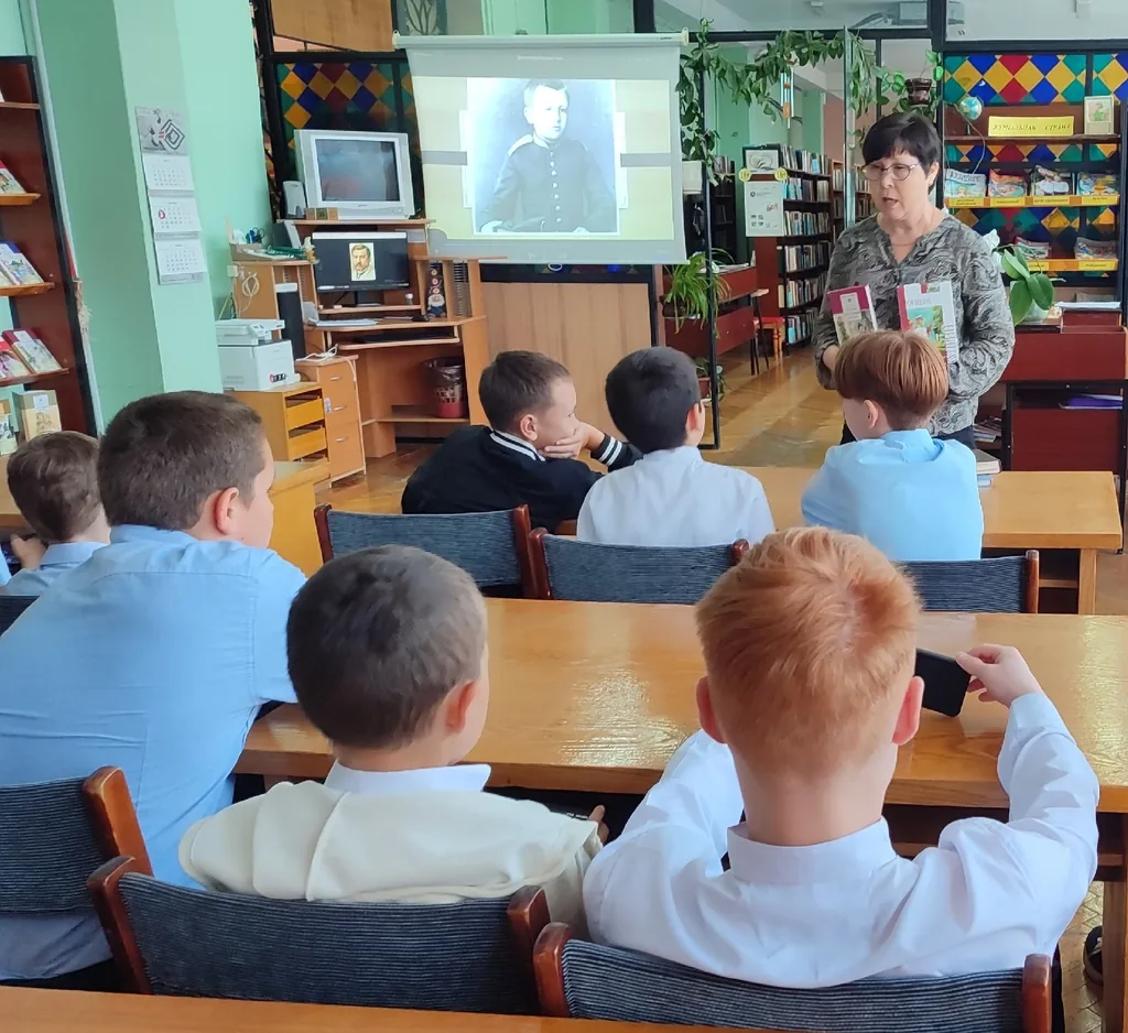 9 сентября в библиотеке - филиале №4 для учащихся 6 класса МБОУ «СОШ №24 г. Йошкар-Олы» был проведён литературный час «Знаток человеческой души», посвященный 155-летию великого русского писателя Александра Ивановича Куприна. На мероприятии ребята вспомнили биографию и творчество писателя, посмотрев видеофильм «Александр Куприн - великий русский писатель», узнали самые интересные факты из жизни писателя. Вместе с библиотекарем участники окунулись в необычный мир его героев, в которых автор выявляет лучшие человеческие качества - любовь к жизни и к людям, чуткое понимание природы, доброту, храбрость, чувство человеческого достоинства. Учащиеся активно отвечали на вопросы викторины по рассказам «Слон», «Чудесный доктор», «Барбос и Жулька». Для ребят были представлены самые известные произведения: «Гранатовый браслет» «Олеся», «Белый пудель» и другие.