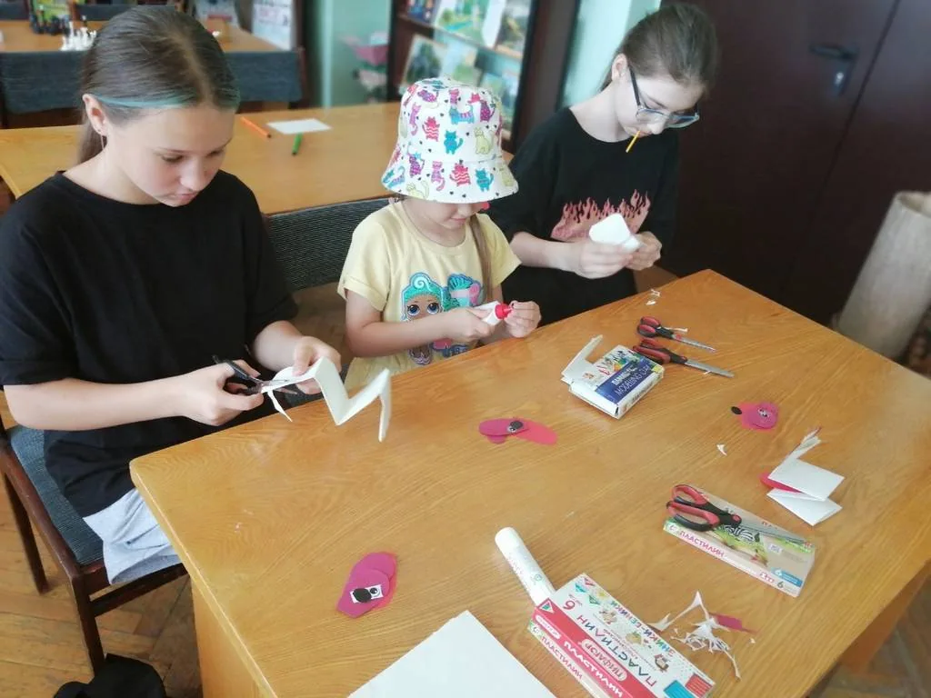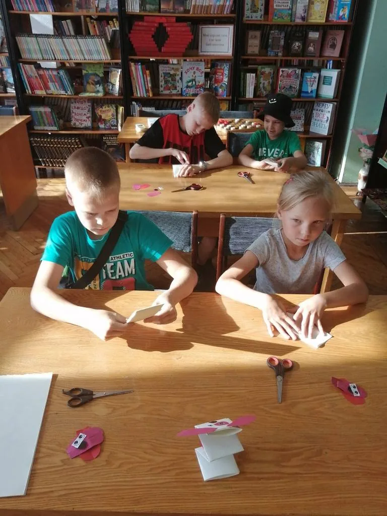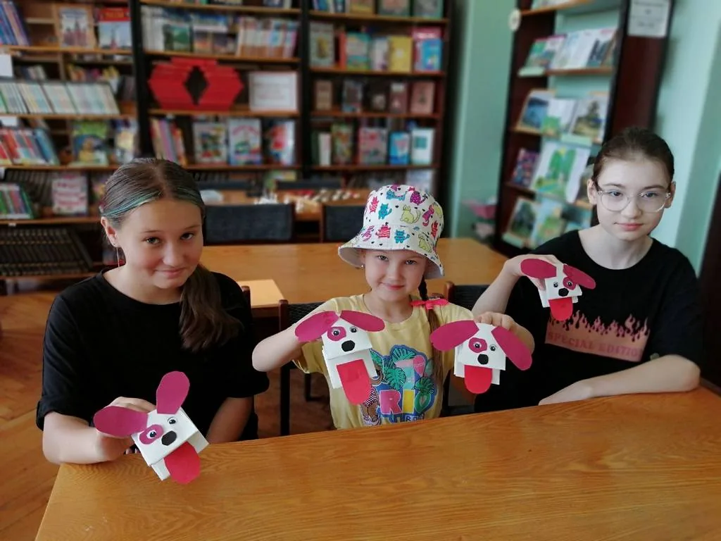 6 июля для юных читателей был проведён мастер - класс собачки-игрушки из бумаги. Ребята вырезали при помощи трафаретов из бумаги детали глаз, ушей и носика. Из красной бумаги вырезали язычок. В технике оригами аккуратно сложили бумаги и в последовательно склеили детали. Получился верный, симпатичный щенок, с которым можно поиграть или подарить лучшему другу как подарок.