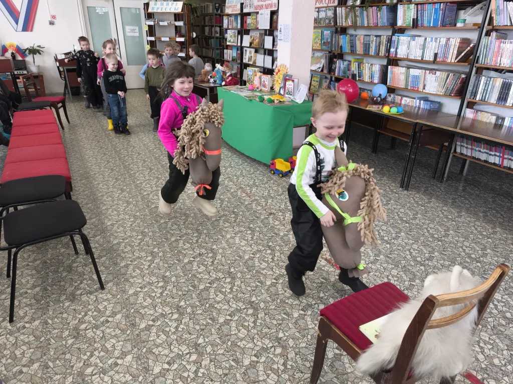 На встречу с детьми из групп «Скворушка» и «Росинка» детского садика №24 «Весняночка», из групп «Янтарик» и «Бриллиантик» детского сада №5 пришла веселая игрушка Кукла-Хохотушка, а на встречу с малышами в Центр «Росток» – две Куклы-Хохотушки, которые предложили юным друзьям библиотеки отправиться в Страну Игрушек по страницам книги-юбиляра А. Барто «Игрушки».