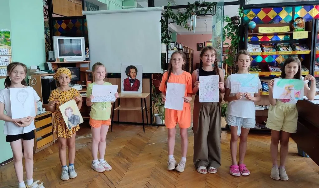 В честь празднования юбилея А.С. Пушкина в библиотеке - филиале №4 для ребят летнего лагеря «Звёздочка» была проведена развлекательная игра - викторина «Угадай Пушкинского героя». Литературное творчество великого русского поэта Александра Сергеевича Пушкина бесценно. Его произведения объединяют людей всех возрастов, национальностей, переводятся на десятки языков мира. Александра Пушкина часто называют основоположником современного русского литературного языка. В ходе мероприятия ребята вспомнили биографию, познакомились с интересными фактами из детства великого поэта и прочитали стихи продемонстрировав свои знания. Участники ответили на вопросы викторины «По дорогам сказок А.С. Пушкина», «Герои сказок», приняли участие в конкурсе «Литературный батл». К этому дню ребята подготовили рисунки и номера с танцами, а в конце мероприятия выстроилась очередь, чтобы сфотографироваться в образе А.С. Пушкина. Дети получили массу положительных эмоций и хорошее настроение.