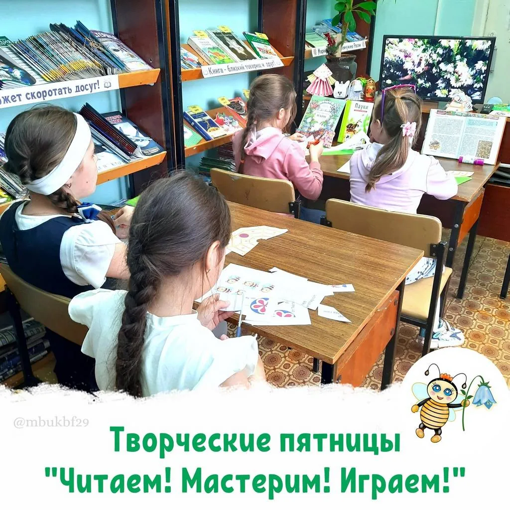 Для юных читателей библиотеки-филиала №29 прошёл тематический урок с мастер-классом «Этот жужжащий, летающий, ползающий мир». На занятии дети познакомились с различными насекомыми, но особое внимание было уделено самым полезным насекомым планеты Земля – пчёлам. Библиотекарь рассказала об особенностях данных насекомых, был просмотрен научный видеофильм о пользе «маленьких трудяг», кроме этого присутствующие познакомились с научной и художественной литературой, где встречаются пчёлы. Вместе с детьми прочитали первую главу из детской книги немецкого писателя Вольдемара Бонзельса «Приключения пчёлки Майи».