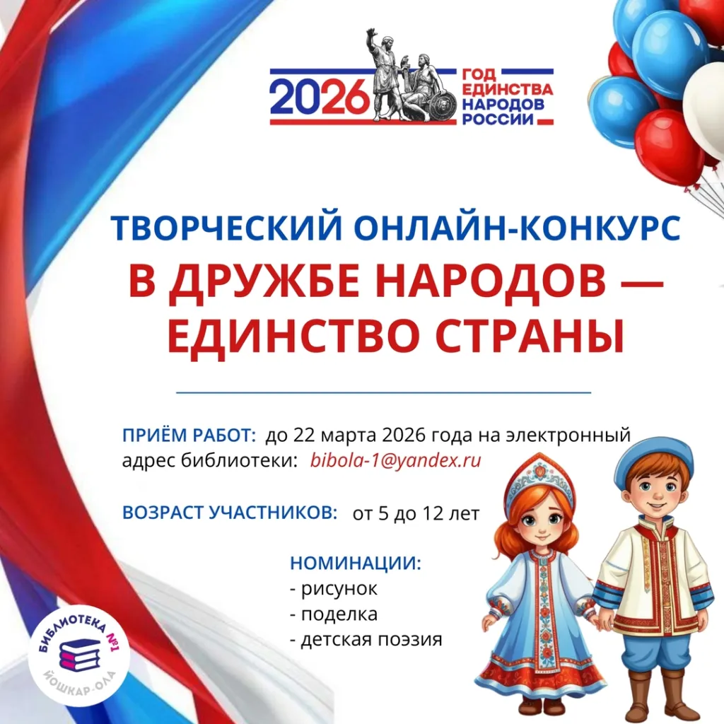 Итоги конкурса будут подведены до 1 апреля 2026 года и опубликованы в группе библиотеки в социальной сети «ВКонтакте»: https://vk.com/bib1yoshkarola и на сайте МБУК «ЦБС г. Йошкар-Олы»: https://olalib.ru/ Подробности читайте в Положении.