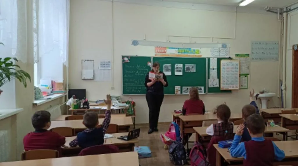 Первоклассники узнали о защите и обороне Ленинграда советскими войсками.