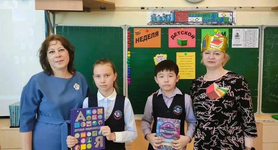 В завершении Книжная королева вручила ученикам призы – «Детскую энциклопедию от А до Я» и закладки.
