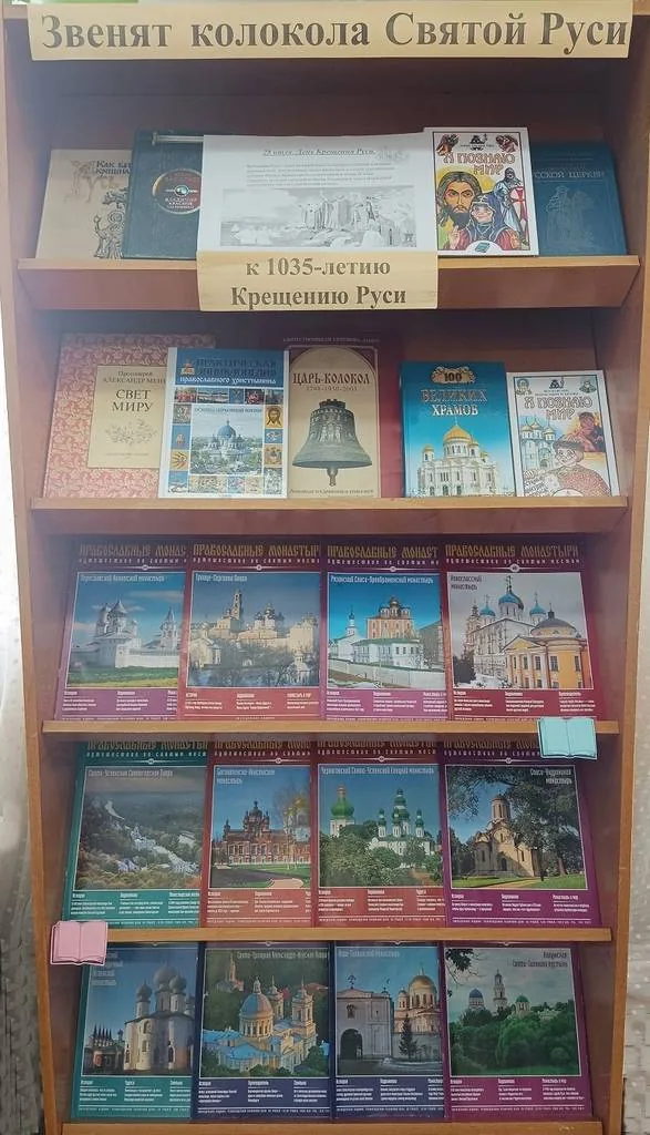 В библиотеке – филиале №1 оформлена выставка – дата «Звенят колокола Святой Руси», посвященная 1035-летию крещения Руси.