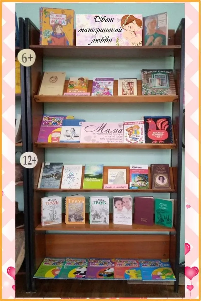День матери - международный праздник в честь матерей. В разных странах этот день приходится на разные даты. В России День матери отмечается в последнее ноябрьское воскресенье. В честь этого дня в библиотеке - филиале №4 с 20 ноября действует выставка - праздник «Свет материнской любви». В этот день хочется сказать слова благодарности всем Матерям, которые дарят детям любовь, добро, нежность и ласку. На выставке представлены замечательные произведения известных авторов, которые заставляют взглянуть другими глазами на своих мам, понять, какую важную роль они играют в нашей жизни, о прекрасной поре каждого человека, где отображается образ матери. Читатели могут почитать стихотворения из сборников известных поэтов, вспомнить произведения отечественной классики и современных авторов. Выставка предназначена для детской и взрослой аудитории.