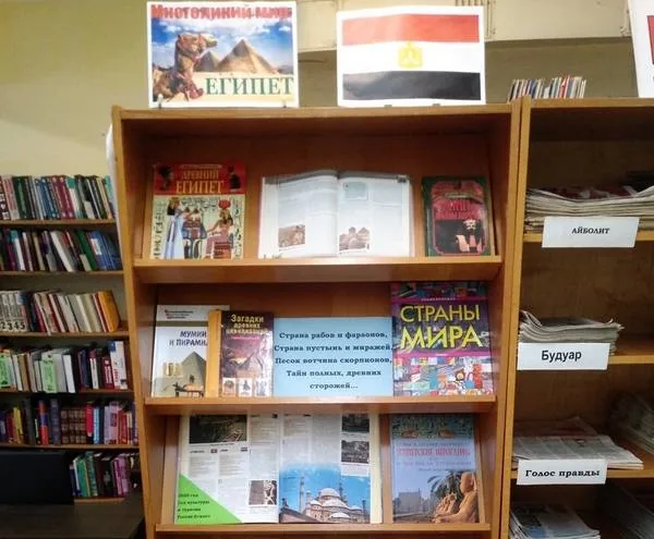 В изданиях, расположенных на выставке, читатель найдет общие сведения о стране, информацию о традициях и быте, религиозных верованиях (энциклопедии и справочники «Страны мира», «Знаменитые города мира»), образцы египетской художественной литературы и фольклора («Сказки Древнего Египта», И. Рак «Египетская мифология», «Легенды и мифы Древнего Египта», «Древний Египет. Сказания. Притчи», Т. Хусейн «Избранное», «Современный египетский рассказ»).