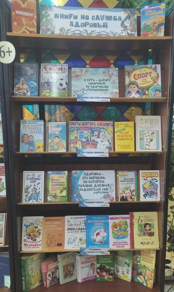 30 января в библиотеке - филиале №4 оформлена книжная выставка - совет «Книги на службе здоровья», на которой представлена литература о здоровом образе жизни, режиме труда и отдыха, о лечебной физической культуре и многом другом. Выставка состоит из четырёх разделов: «Спорт, как стиль жизни», «На страже здоровья», «Здоровые советы» и «О здоровье в сказках и стихах». Первый раздел выставки «Спорт, как стиль жизни», посвящён книгам по истории Олимпийских игр, великим спортивным достижениям и олимпийским чемпионам. В разделе «Мы на страже здоровья», книги посвящены здоровому образу жизни, правильному питанию, режиму труда и отдыха, лечебной физической культуре. В третьем разделе «Здоровые советы», книги помогут быть здоровыми, сохранить и укрепить здоровье, познакомить ребят о пользе овощей, фруктов, о культуре питания. Четвёртый раздел «О здоровье в сказках и стихах» поможет нашим читателям вспомнить о героях сказок и стихов, которые учат нас здоровому образу жизни.